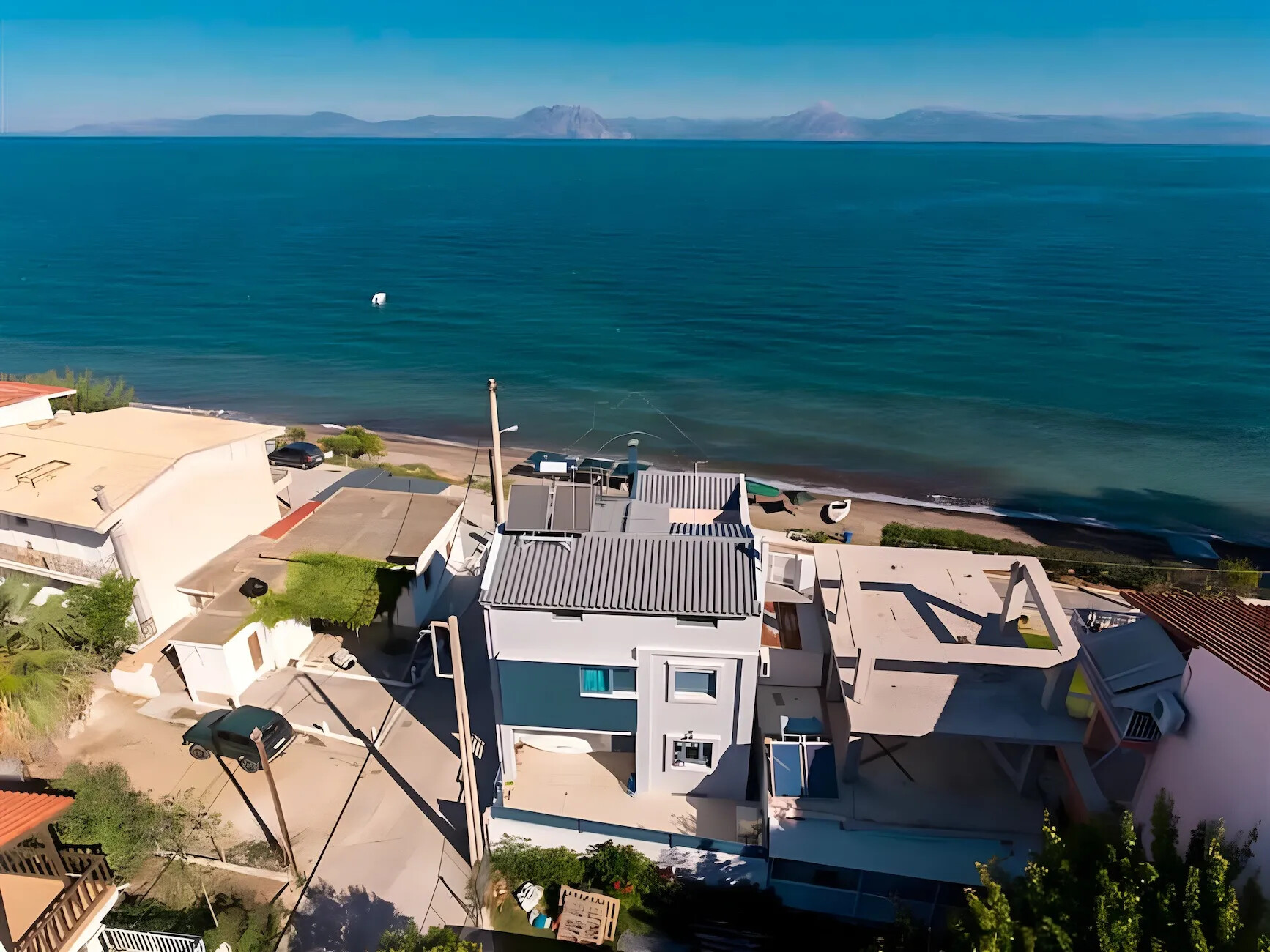 Embrace seafront luxury with this exquisite beachfront villa, offering breathtaking panoramic views of the Ionian Sea and the Rio-Antirrio Bridge. Situated just steps from the beach, this stunning residence spans multiple levels, providing both privacy and a seamless connection with nature.