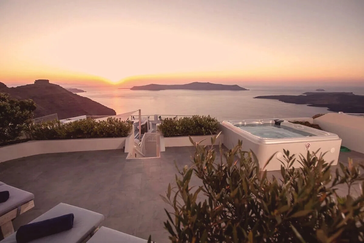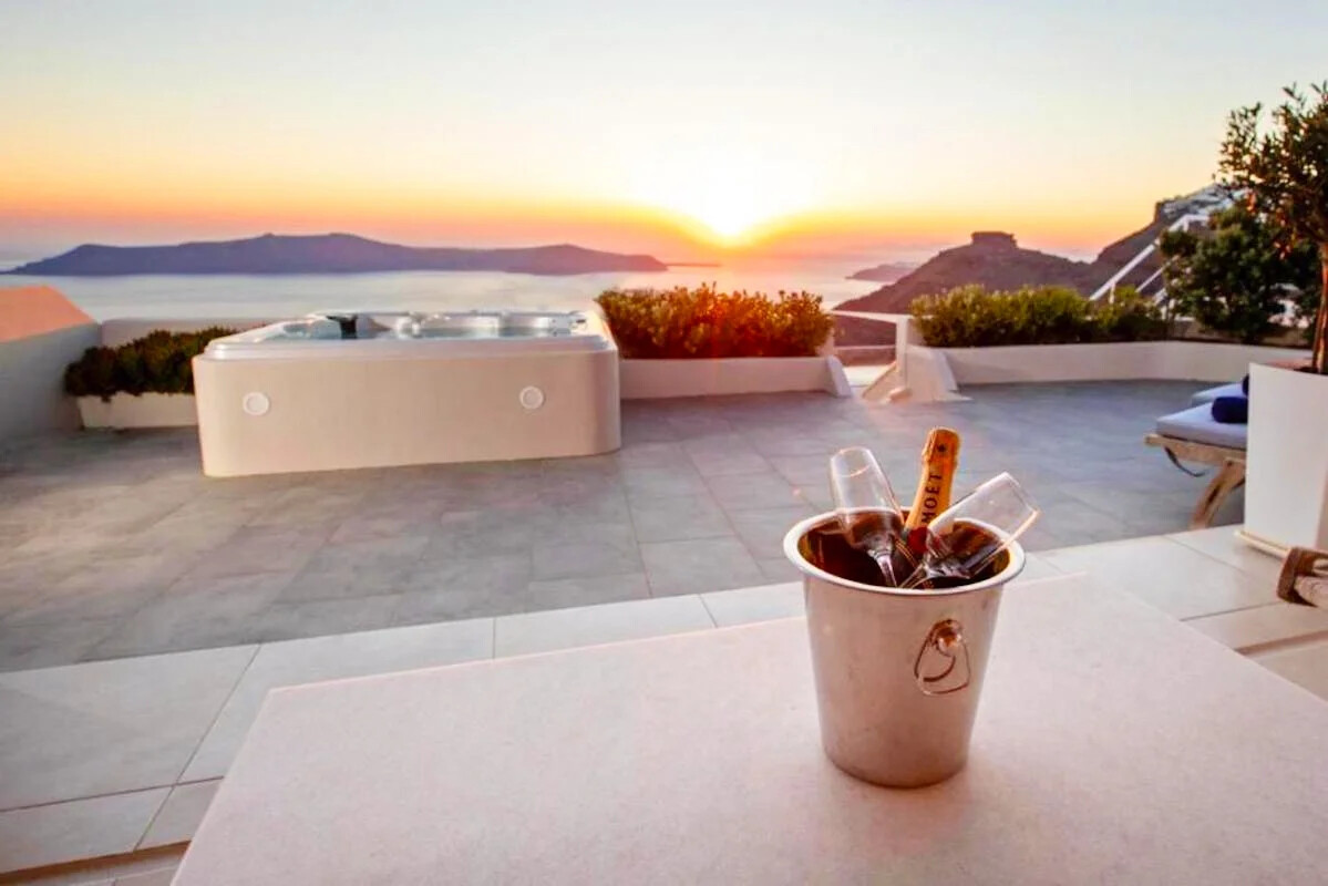 - Uninterrupted views of the volcanoes, Therasia, and the renowned Santorini sunset
