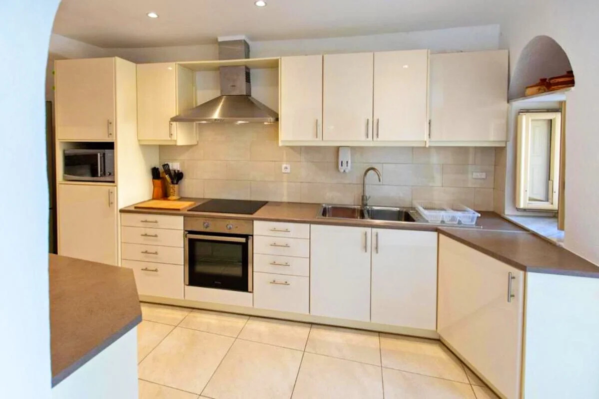 Dating back to 1960 and renovated in 2010, this subterranean residence perfectly combines traditional island architecture with modern conveniences. The property is fully furnished and equipped, making it move-in ready for immediate enjoyment.
